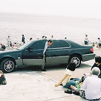 동행인의 발, 그리고 소라컵을 들고있는 얼굴 아래의 몸